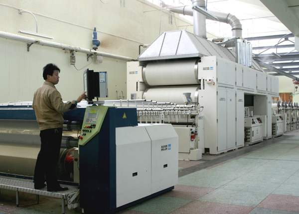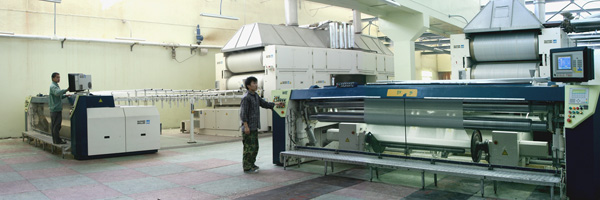 公司目前拥有整套无梭织造生产线。配置丰田、毕佳乐喷气织机共350台(套);德国祖克S432型浆纱机3台;贝宁格高速整经机5台;比利时阿特拉斯无油螺杆空压机7台;瑞士史陶比尔结经机5台;国产75"有梭织机700台,及相关辅助生产设备。