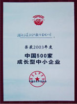 | Chinese 500 Growing Small-sized or Medium-sized Enterprises in 2003 | Designated Model Unit of Credit System of Foreign- Trade Enterprise |